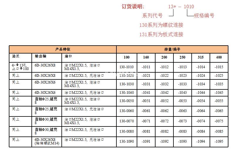 排量 | 100 | 160 | 200 | 250 | 315 | 400 | |
